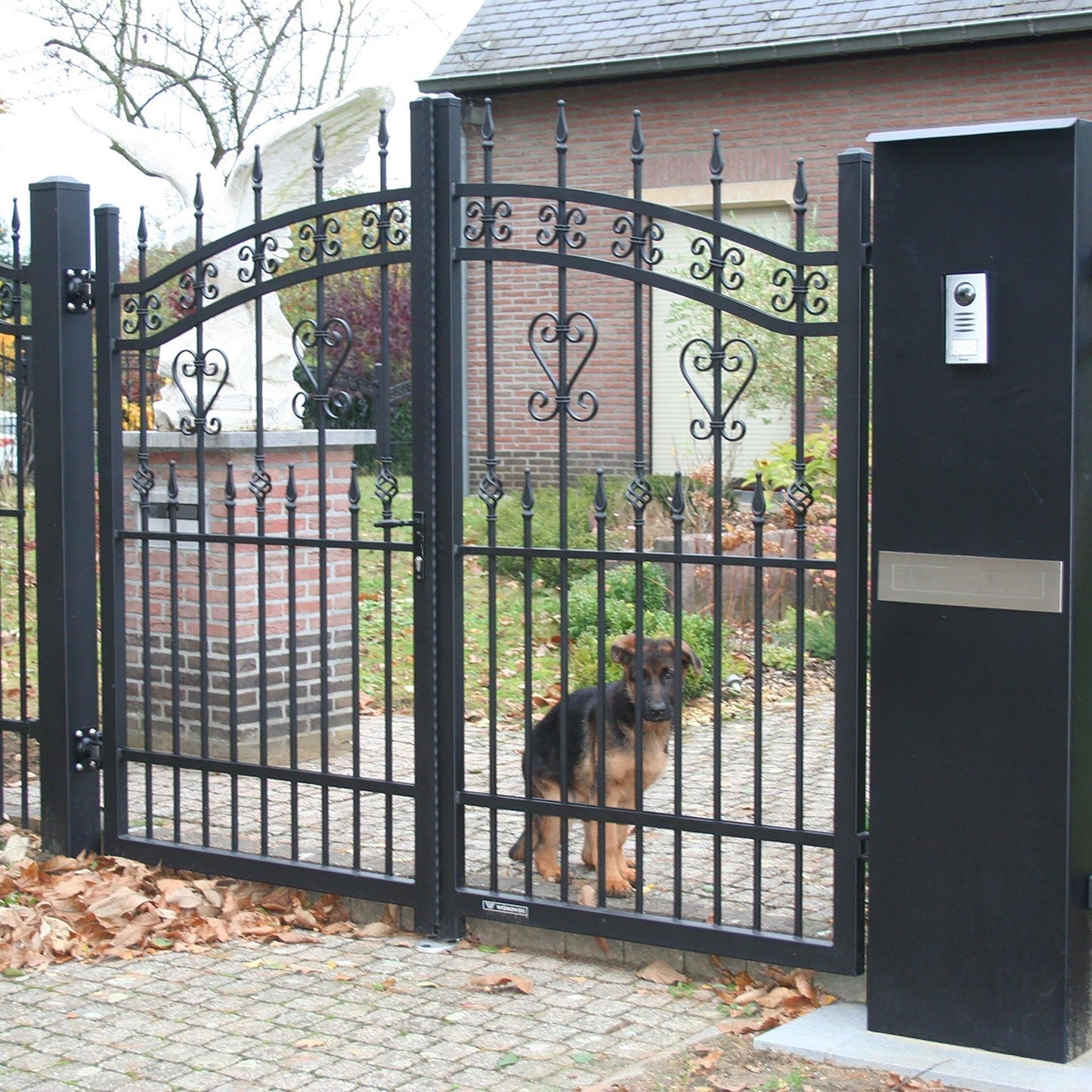 Naast het hek zelf is ook de toegangspoort een belangrijk punt van aandacht. Een verkeerd ontworpen poort kan een ontsnappingsroute worden, vooral als je hond snel door openingen glipt.