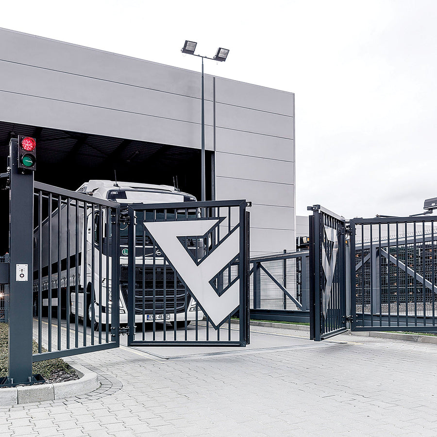 De TRAFFIC vouwpoort combineert de voordelen van een dubbele draaipoort en een slagboom, waardoor het een ideale oplossing is voor permanente toegangscontrole en verkeersbeheer. Deze snelle en ruimtebesparende vouwpoort is beschikbaar als enkele of dubbele uitvoering, afhankelijk van de specifieke behoeften van jouw terrein.
