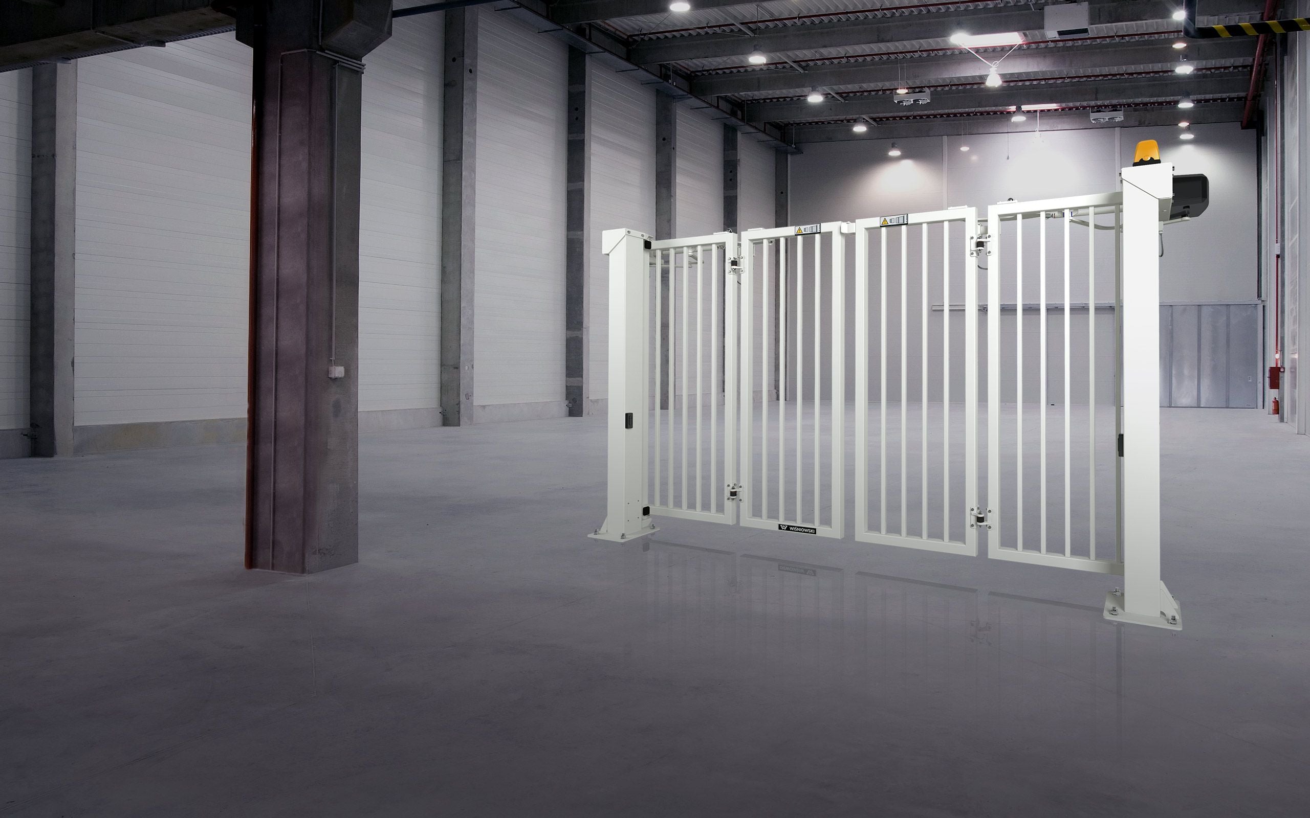 De V-KING vouwpoort van WIŚNIOWSKI is ontworpen voor omgevingen waar snelheid, robuustheid en veiligheid essentieel zijn. Met een geavanceerd vouwsysteem en een versterkte staalconstructie biedt deze poort een ongeëvenaarde combinatie van efficiënte toegang en optimale beveiliging.